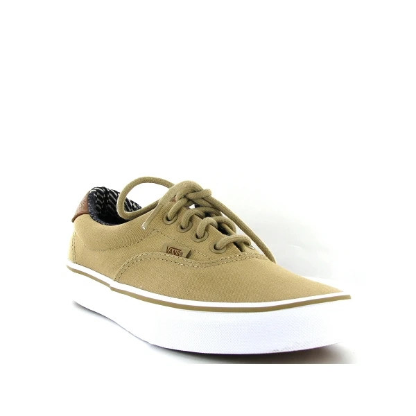 Vans Era 59 Beige, La Era 59 est une chaussure de skate basse à lacets, associe une tige solide en toile et en cuir à coutures renforcées, des oeillets en métal, une semelle extérieure Waffle signature en caoutchouc et un bracelet matelassé offrant maintien et souplesse.